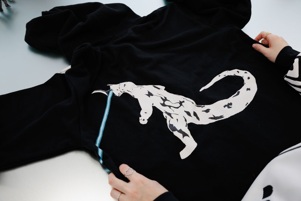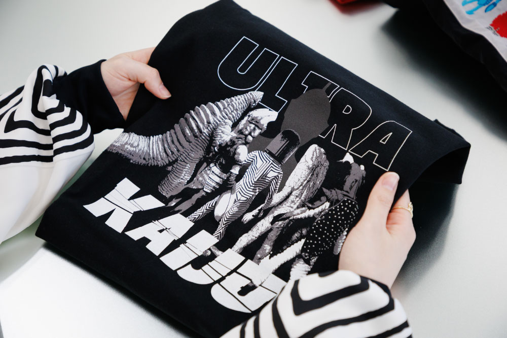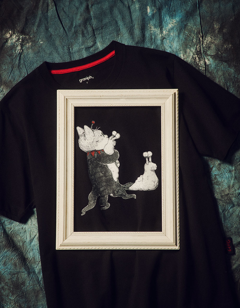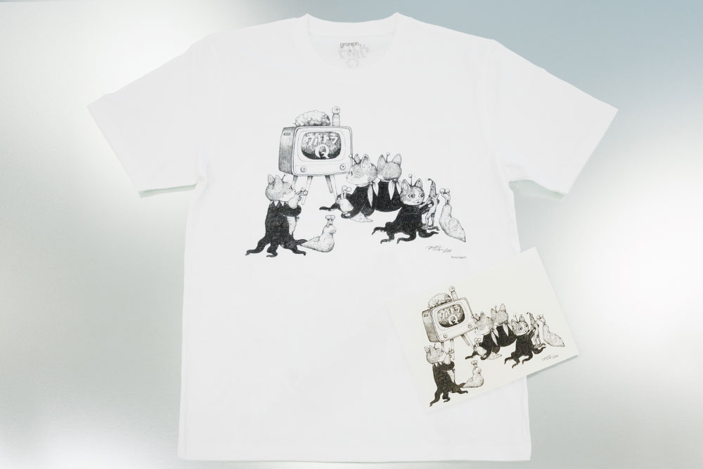 石川「大作に挑戦」Tシャツはフロント中央にギュスターヴくんをプリントし、『ウルトラQ』のロゴをシルバーの刺繍で表現しています。「ロゴと自分の絵が一緒になったらうれしい」とよく仰っていたので、実現できてよかったです。