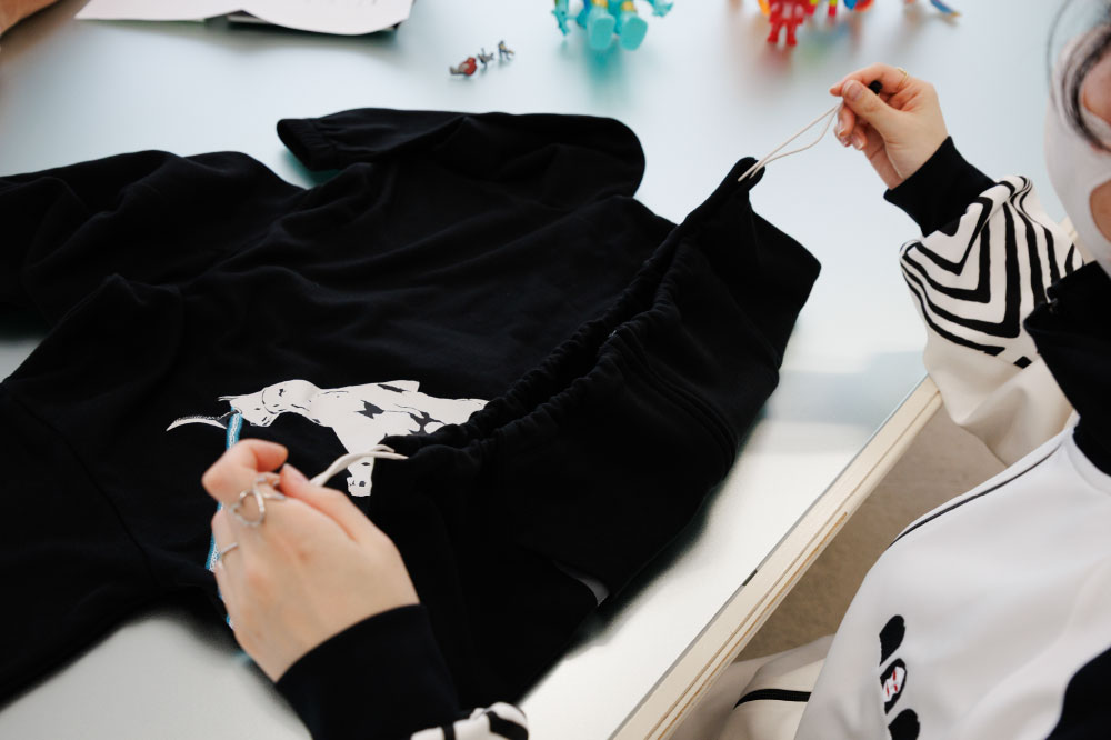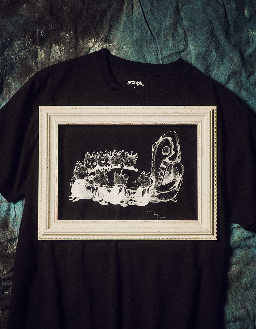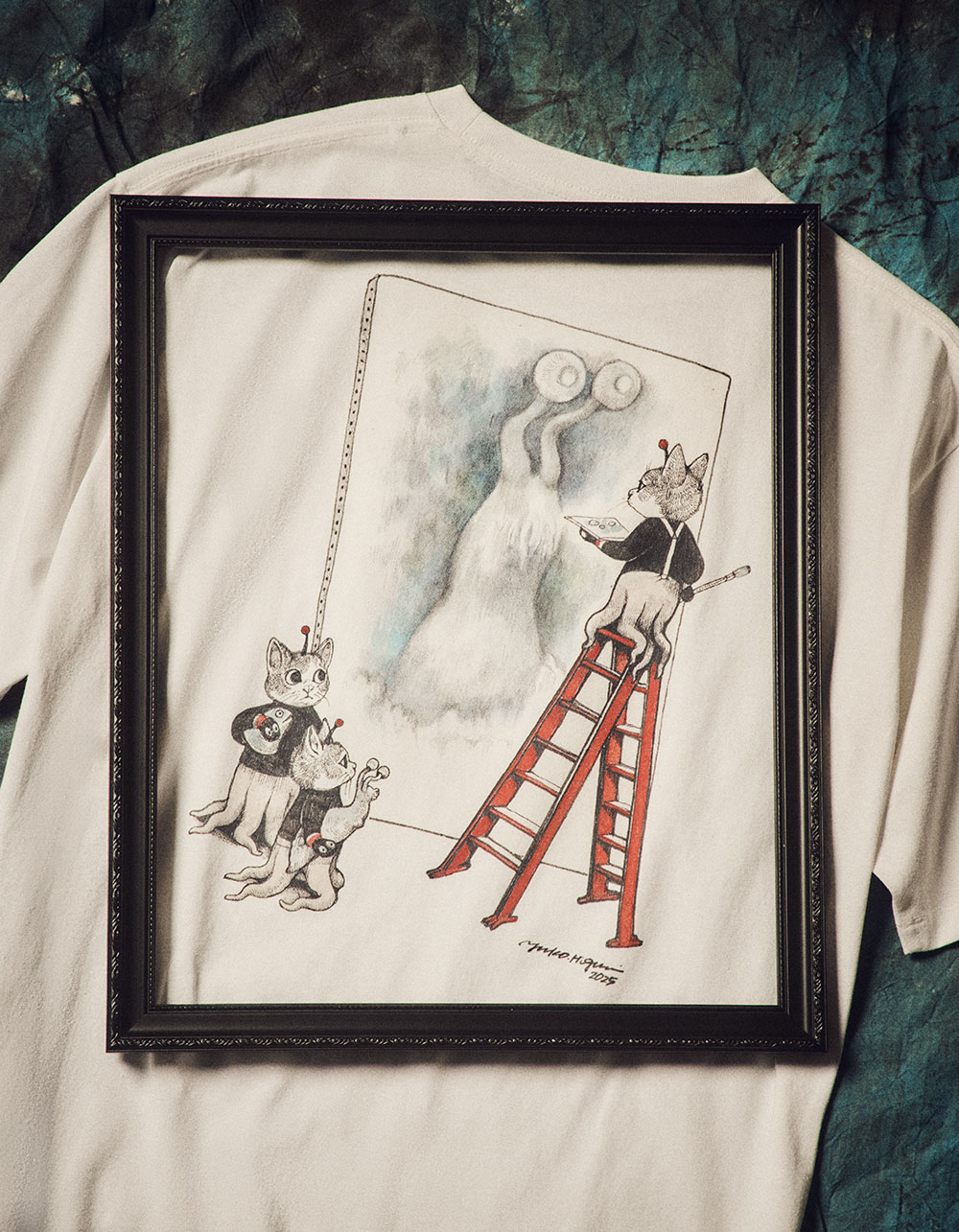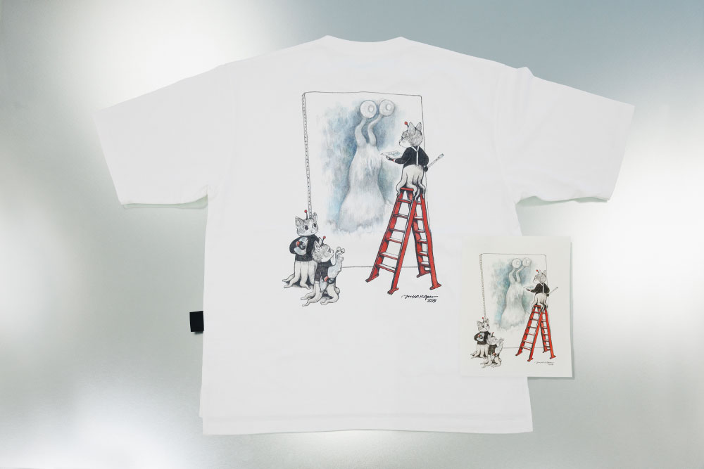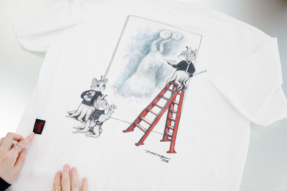 石川「夢っぽい感じでいいよね」とヒグチさんからご提案をいただき、反転デザインのTシャツが実現しました。