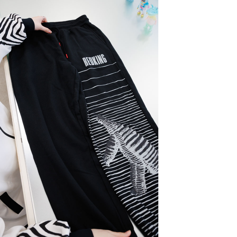 月脚赤もグレーも合わせやすそうですね。大きいサイズのプリントで迫力もあります。