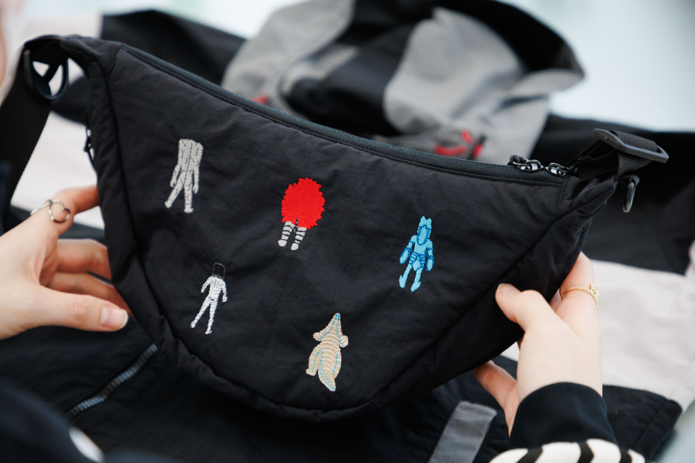 石川怪獣たちのシルエットは監修いただいていることもあり、過度にカラフルになりすぎずデザイン的におしゃれに表現できると感じ、ショルダーバッグも作りました。