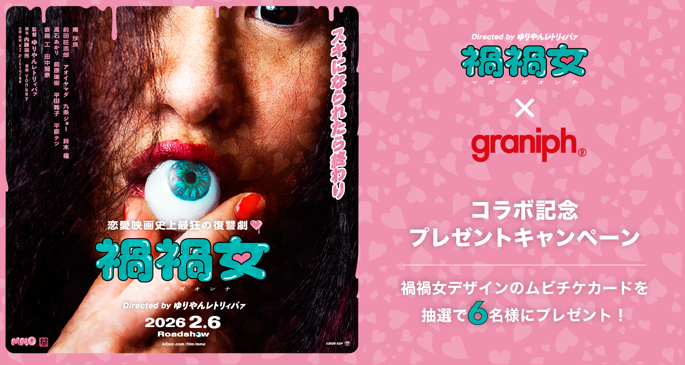 今回のコラボレーションを記念して、グラニフ公式Xでは禍禍女デザインのムビチケカードが抽選で6名様に当たるキャンペーンを実施!