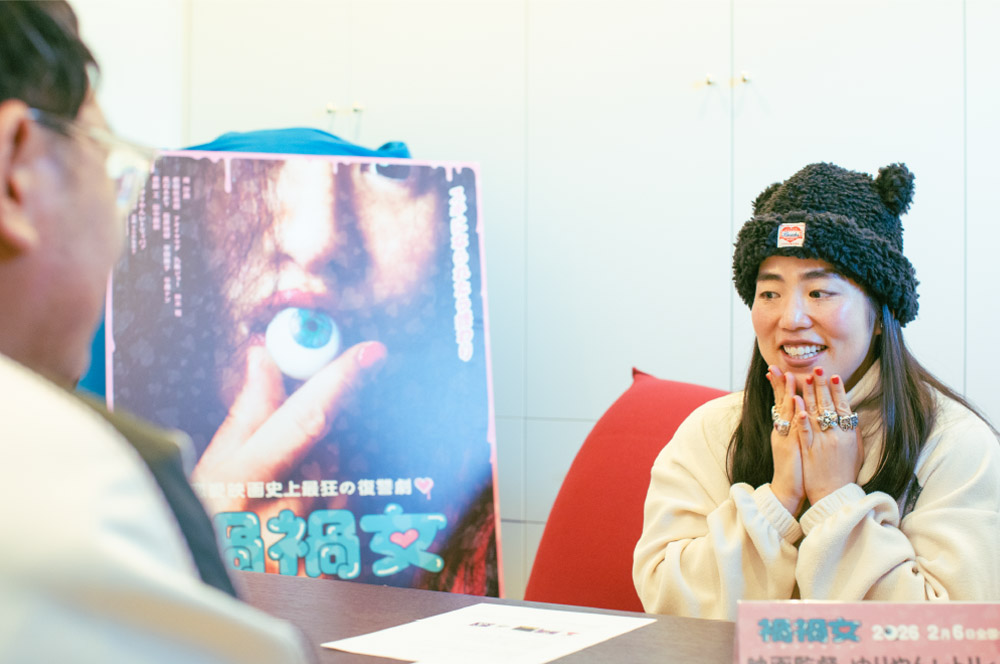 ゆりやんレトリィバァ でもホラー映画好きやったし、もともとホラー映画監督になりたかったんで、ちょうどいいやみたいな。それで、オリジナルでやりましょうって言ってくれて。でもちろん私は脚本書けないんで (脚本家の) 内藤瑛亮さんが入ってきてくださって、もうそこからただただ楽しくて、どんな映画にしましょうとか、最近あった怖かったこととか、最近好きな人に言われたこととかを話す、ただ世間話をずっとしている期間があって。それをなんか、じゃあこういう方向性どうですか?と脚本にしてくれました。いろいろみんなで話し合って、内藤さんが一稿、二稿とどんどん作ってきてくださったっていう感じです。